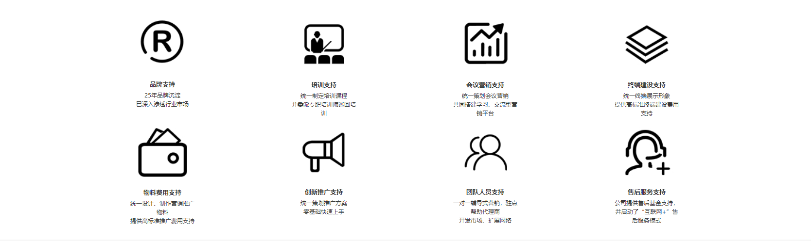 6600多個銷售服務網點已遍布全國,系統的品牌營銷支持、健全的“輔導式”營銷模式、豐富的渠道管理模式 及經驗、完善的售后服務體系、每年2-4次全國營銷峰會,30次以上區域培訓交流峰會,確保加盟客戶能夠 零基礎上手,共同開創超人新格局!