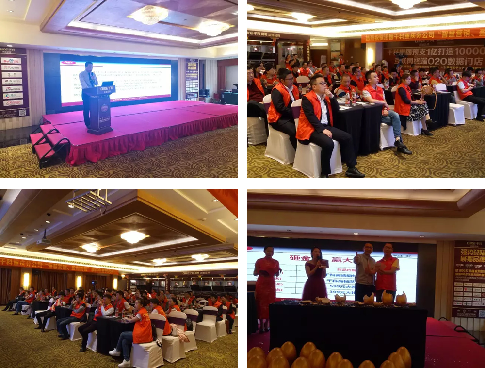 2017年4月22日,千科全體高層與代理商,齊聚重慶金科大酒店,共商重慶發展大計,如何實施百萬縣鎮盈利模式,如何扶持代理商年銷量超百萬,精彩的分享讓會場所有人沸騰不已,很多商家自此與千科結緣,攜手開創百萬縣城的新局面。