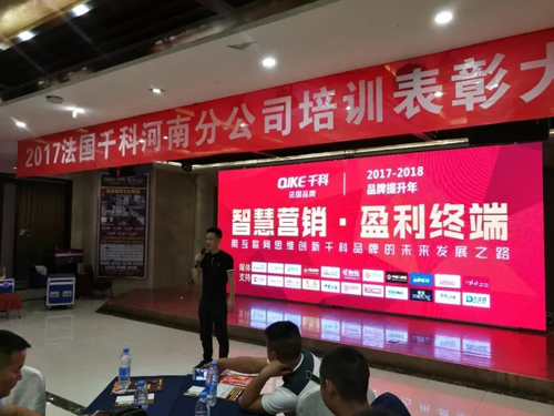 公司運營總監劉洋親自分享2017年公司品牌發展方向及戰略規劃,為下半年眾多商家的奮斗目標確定方向。逐鹿中原,拓展千科,將作為千科品牌下半年的主力發展目標,同時,千科品牌隆重推出全新系列終端形象展柜,通過提升終端店面形象,服務經銷商,打造品牌強勢終端!