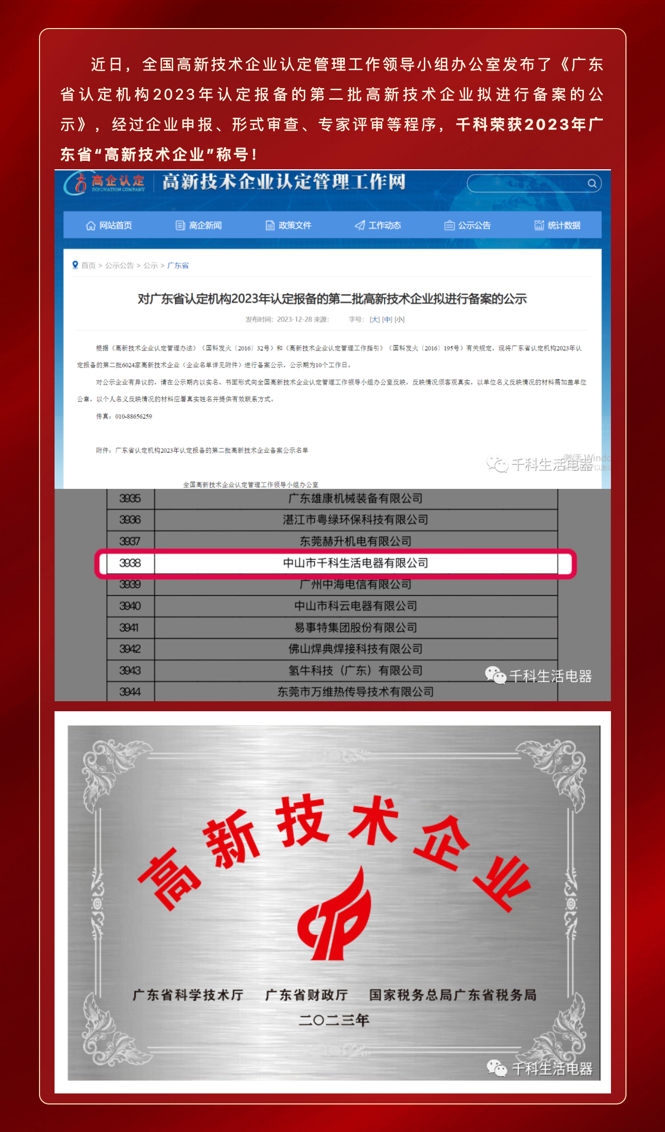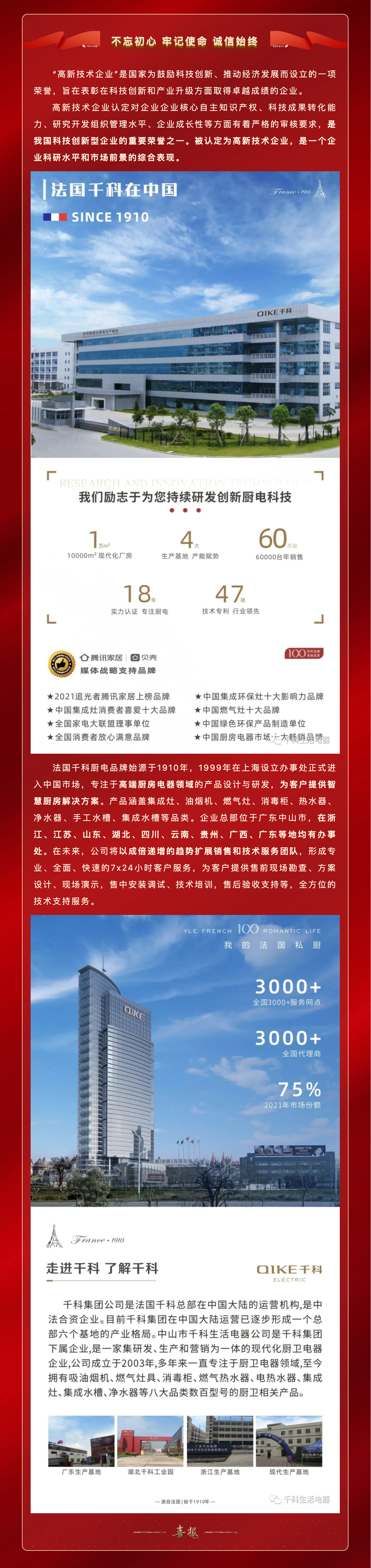 新年喜訊 | 廣東中山千科生活電器有限公司榮獲“國家高新技術企業”認定!